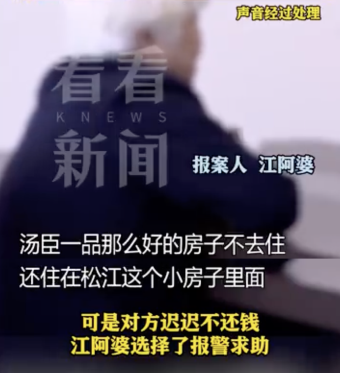 而當江阿婆催促對方還錢時,對方則是一拖再拖,江阿婆越想越不對勁。“她家湯臣一品那麼好的房子不去住, 還住在松江小房子裏面?”