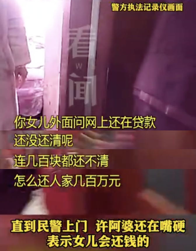 當民警以涉嫌詐騙上門傳喚告知許阿婆和她女兒姚某的時候,許阿婆還覺得自己能還錢!幾百萬能還!雖然她女兒姚某網貸的幾百塊都還不出來