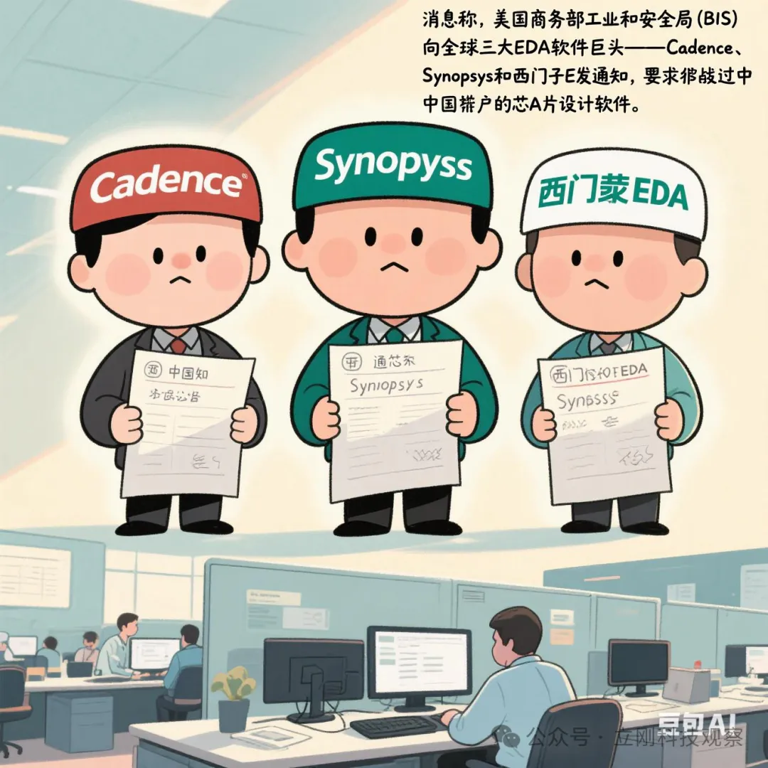 消息稱,美國商務部工業和安全局(BIS)向全球三大EDA軟件巨頭——Cadence、Synopsys和西門子EDA 發出通知,要求停止向中國客户提供芯片設計軟件。