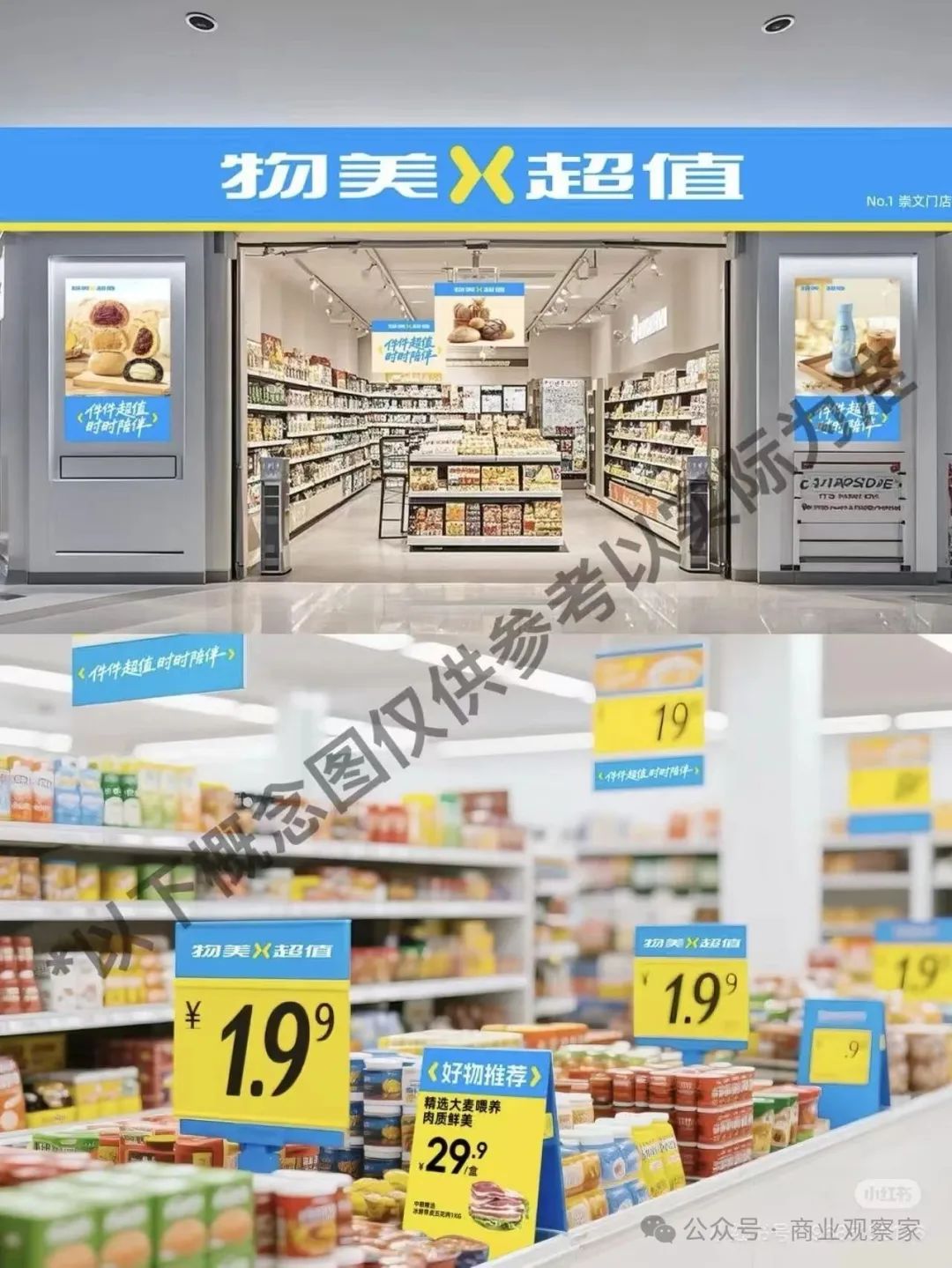 而從“物美超值”的效果圖來看,也沒做生鮮,其的面積體量也不大,整體形態與好特賣等也有類似,但《商業觀察家》查詢了物美即將關閉調改的這6家物美超市門店,面積則差不多都是1700到4000多平米的中型超市賣場店,所以,現在還不清楚物美是想把這些中型超市店整體改造成“物美超值”折扣店,還是從這些中型超市中劃出一塊區域來做一個折扣店品牌。