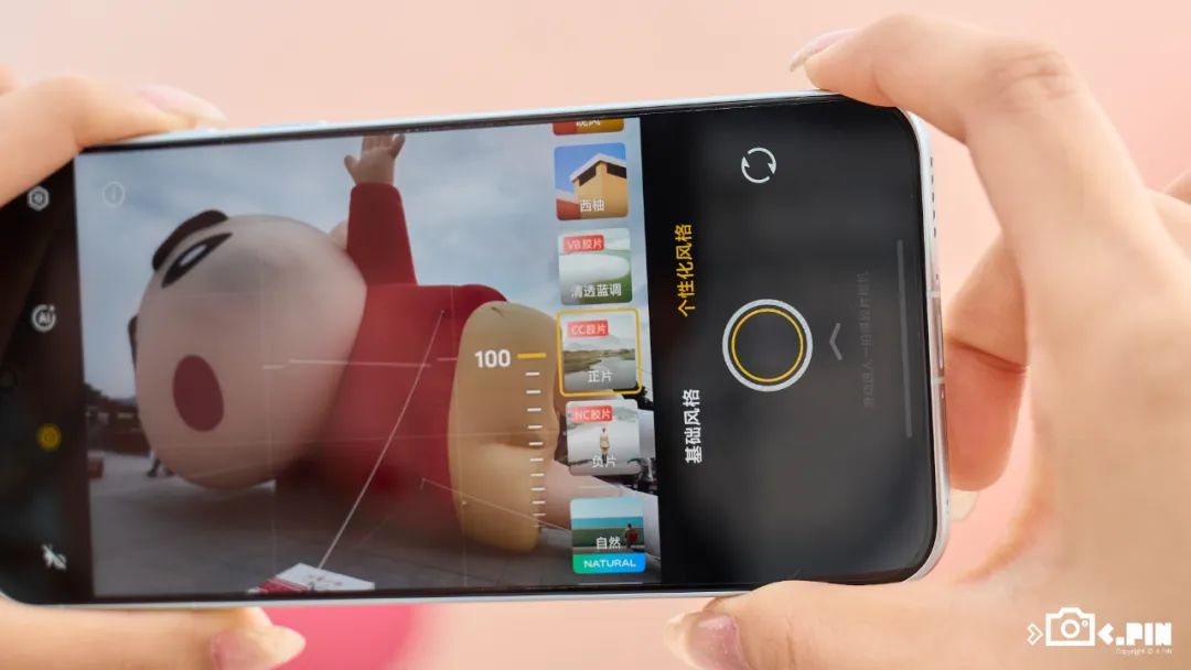 打開相機色彩風格選項,可以看到除了質感、鮮明、自然三種經典風格,它還額外新增了經典負片「NC膠片」、經典正片「CC膠片」和清透藍調「VB膠片」這三種膠片色彩,它們都能在拍 live 實況照片時生效。