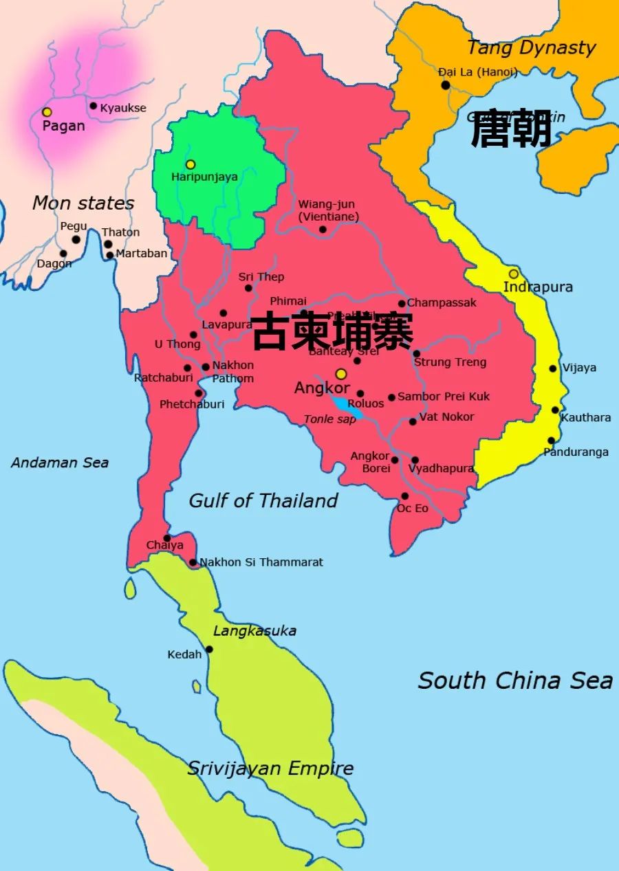 扶南之後,柬埔寨相繼進入了真臘和吳哥時期,其中9-15世紀的吳哥王朝是柬埔寨最輝煌的時刻。吳哥帝國在這段時期曾統治中南半島大部分地區,其疆域從東部的越南向西延伸到緬甸,從南邊馬來半島向北延伸到中國邊境。現在泰國、柬埔寨和老撾所在地區都曾是吳哥帝國的領土。