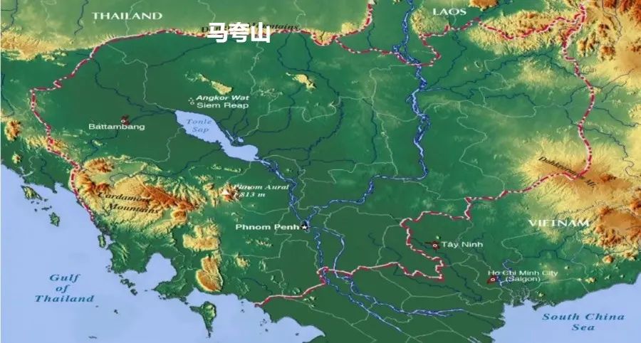▲柬埔寨地形圖,其中馬誇山就是柏威夏寺所在山脈