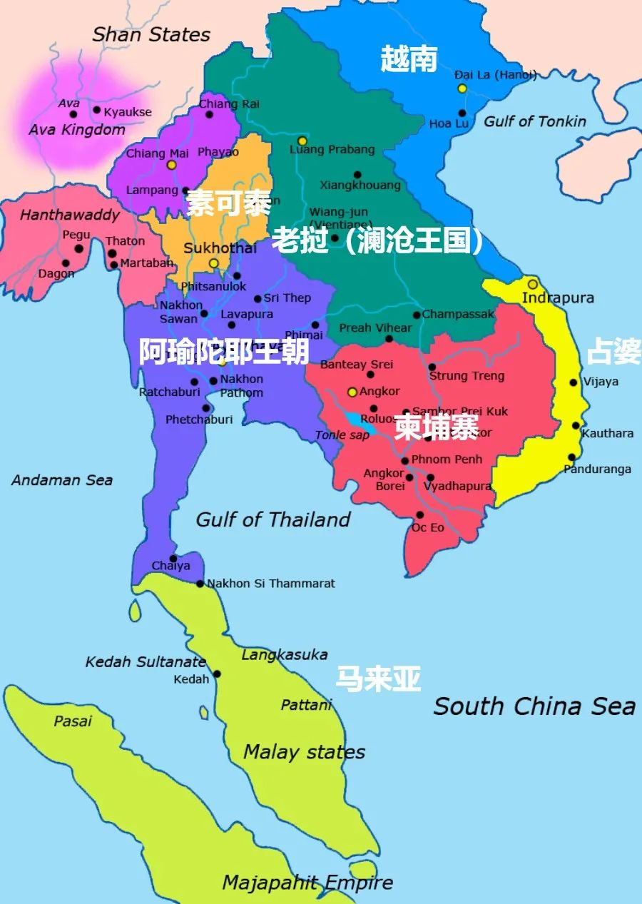 泰人政權南邊的吳哥帝國國內王位爭奪混戰不斷,西邊的鄰國緬甸因為攻擊元軍控制地區則是遭到了元軍的打擊。在這種有利的形勢下,素可泰等政權逐漸站穩了腳跟並不斷向南擴張。
