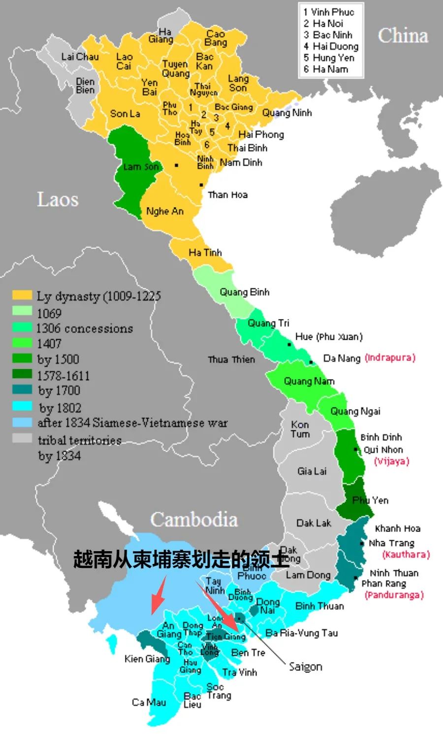 ▲圖中最下方綠色部分是越南從柬埔寨手中奪取的領土