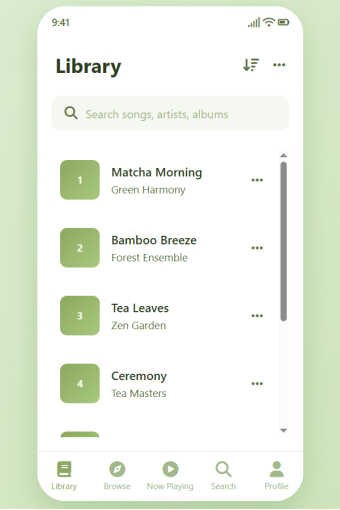 比如下面這個原生iOS風格界面設計,採用了抹茶綠色主題,融合現代美學,看起來搭配很流暢。