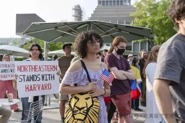 在哈佛正門前,一場支持國際學生、反對簽證禁令的集會成為社交媒體刷屏事件。