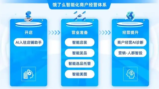 在商家端,日前,餓了麼推出了智能化商家經營體系,涵蓋智能開店、智能店裝、經營診斷等功能的一攬子AI工具,幫助商家實現從入駐到日常運營的全鏈條效率提升。