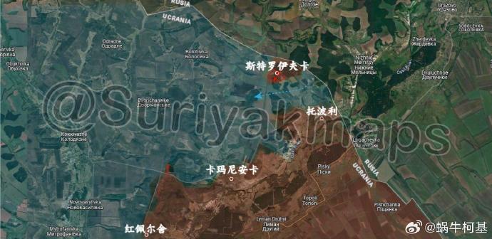 3、德沃裏奇納:俄軍全面控制了斯特羅伊夫卡。烏克蘭軍隊因此開始從該村莊周圍的邊境撤退。此外,俄軍在紅佩爾舍以北小幅推進。