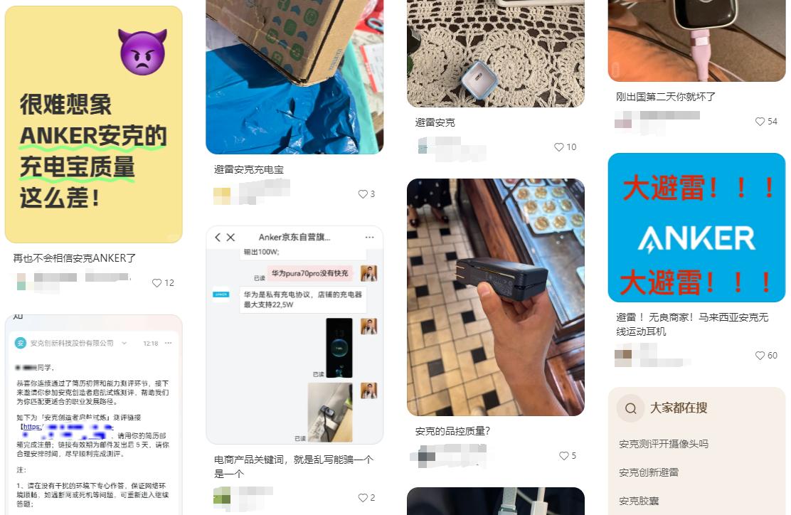 有關安克產品的避雷貼 圖源:小紅書