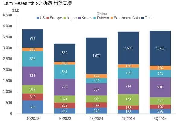 在應用材料、阿斯麥(ASML)、東京電子、泛林等頭部半導體設備公司的財報中,“中國市場貢獻超40%營收”已成為常態。