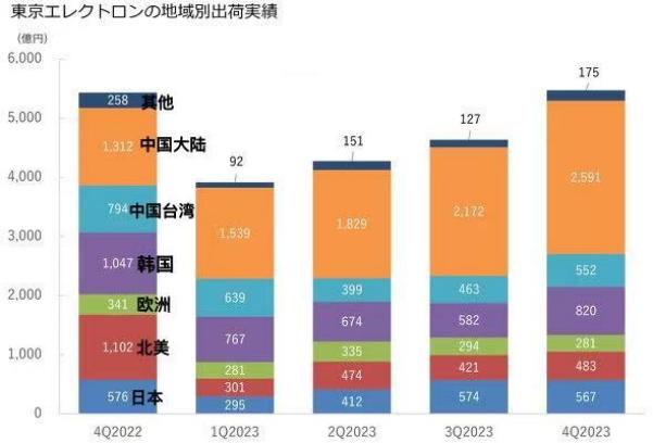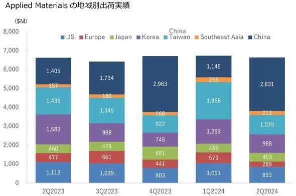 2023年,儘管半導體市場低迷,半導體設備的出貨量卻並未明顯下降。這一年,三星電子、台積電、英特爾等半導體制造商因市場低迷而暫停購買製造設備,但這一低迷被對中國製造設備出貨量的增加所抵消。