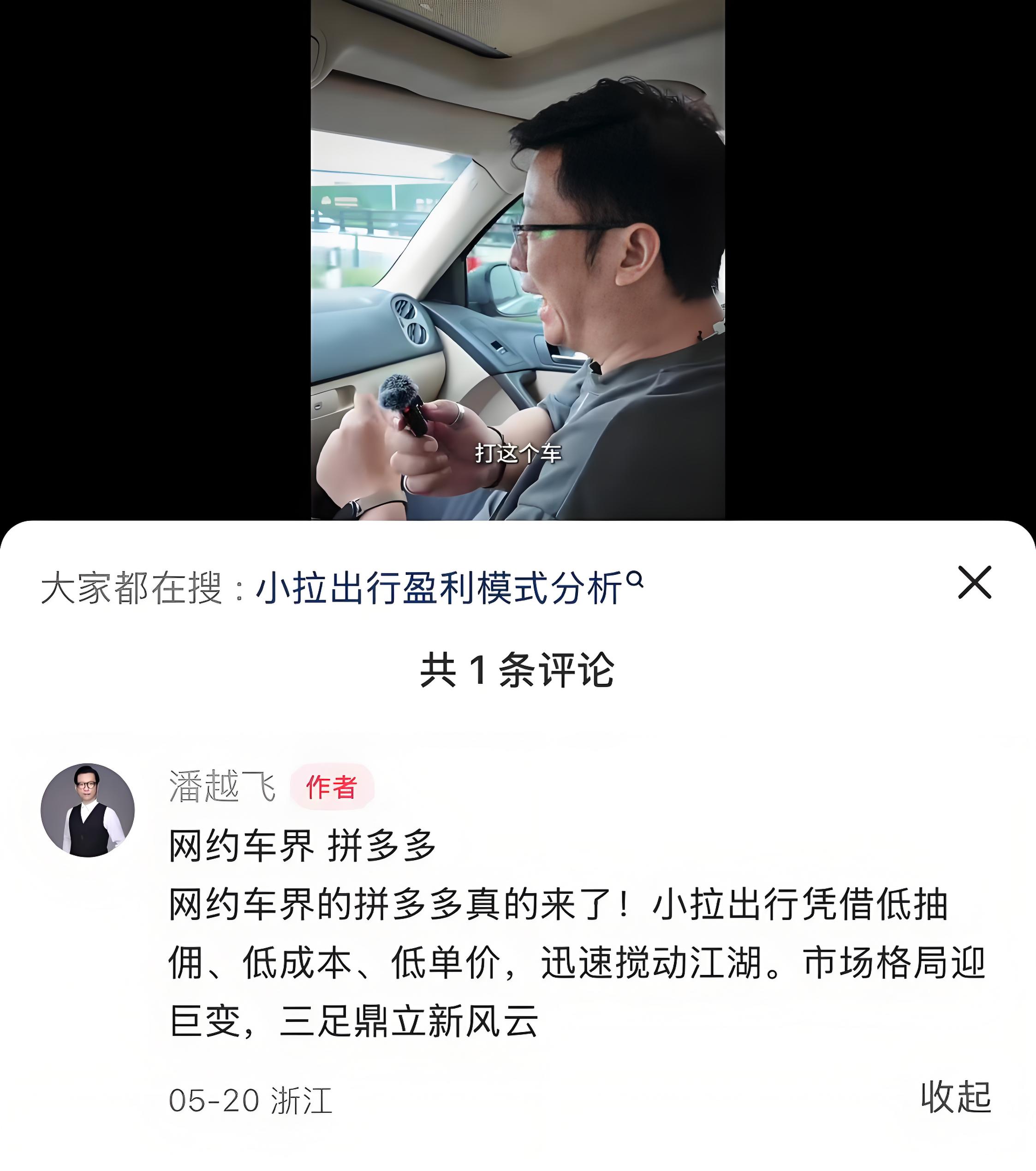 上個月,他在司機羣裏看到有人討論小拉出行——“跑的越遠越便宜,抽傭最低才1%,堵車也不加價”,半信半疑的他註冊了賬號。