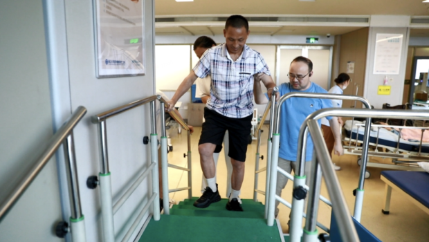 術後僅僅3天,金先生就恢復了彎腿、抬腿等動作的控制。半個月後,他能起身下牀自主站立,並做出邁步動作。直到術後1個月,金先生的下肢功能進一步改善,在助行器的幫助下,他恢復了行走能力。