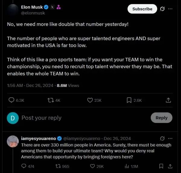 第一個出來發聲的是馬斯克。他發帖説:
