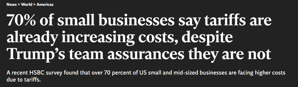美國超七成中小企業坦言關税已致成本攀升:未來無法預見,進退兩難_風聞