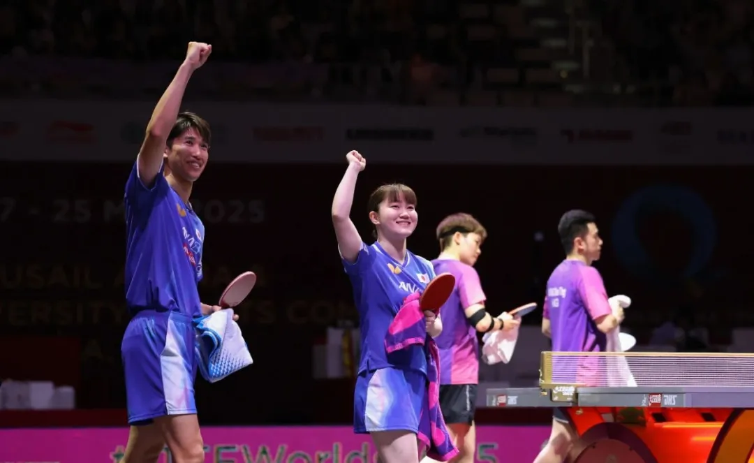 首次配對的日本組合吉村真晴/大藤沙月,一路淘汰奧運會亞軍李正植/金琴英,世界排名第一的林詩棟/蒯曼,此前三屆世乒賽銅牌得主黃鎮廷/杜凱琹躋身決賽,大比分1-3不敵王楚欽/孫穎莎獲得亞軍。