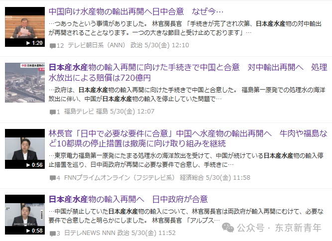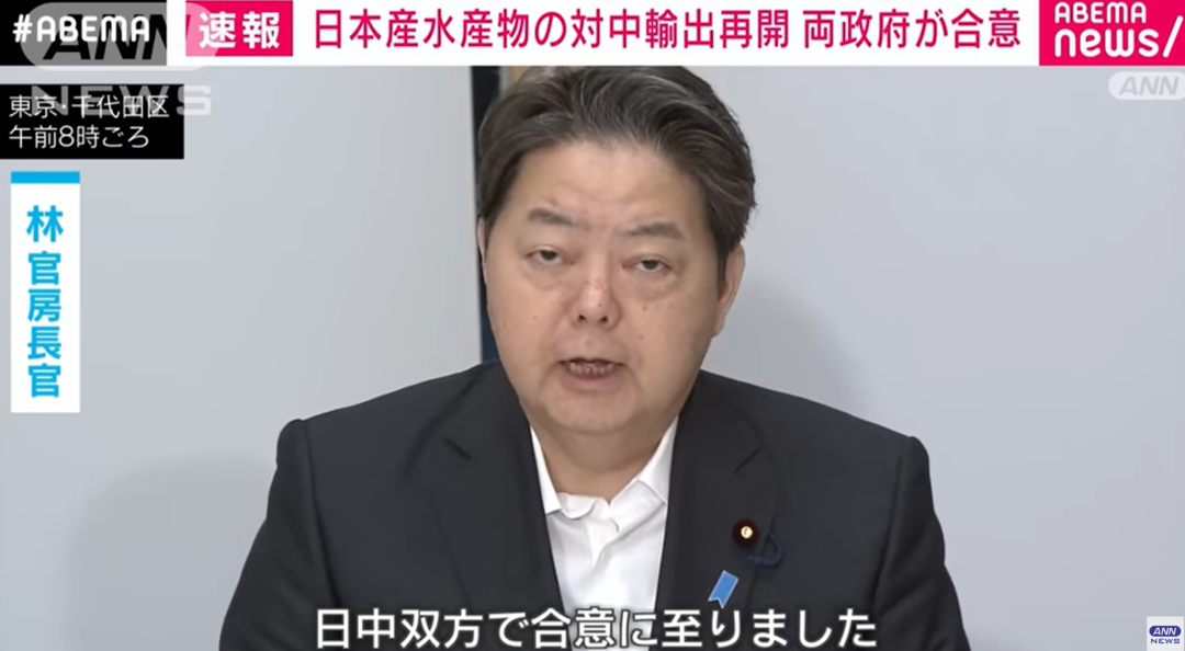 2025年5月30日,日本內閣官房長官林芳正宣佈,在當天舉行的農林水產物及食品出口擴大相關閣僚會議上,中日雙方就日本水產品出口再開的技術要件達成一致。