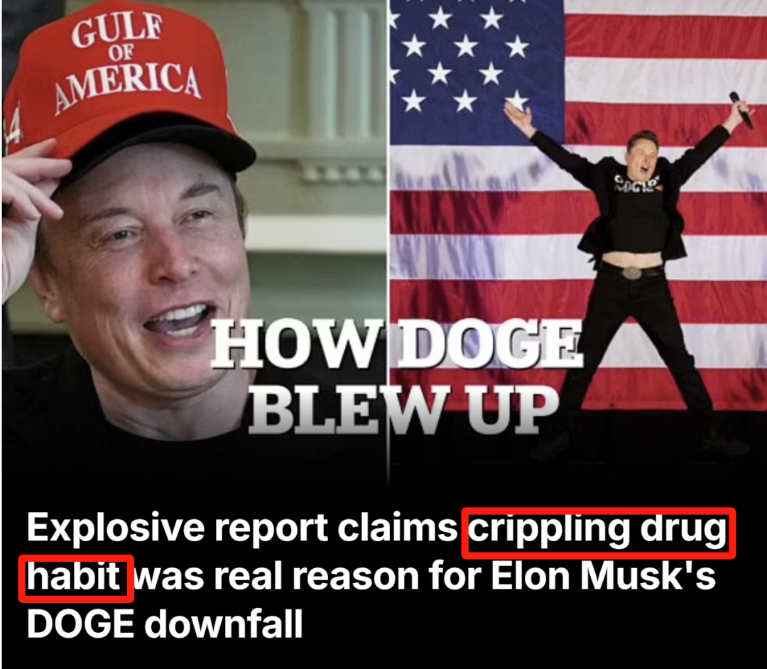 這對“義父子”上演了一場大戲,攪得白宮一團亂,馬斯克倒是因為全球多國抗議燒特斯拉低調了些,結果現在卻因為下台被爆猛料:説他下台是因為“嚴重的吸毒習慣”?!