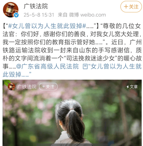 5月8日,廣州鐵路運輸法院的官方賬號發佈了一篇宣傳文章。