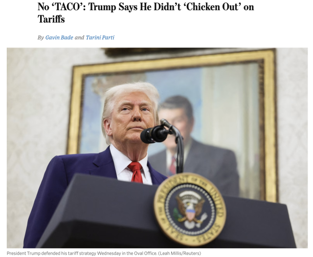 政策反覆!特朗普“TACO”走紅:每次放狠話,最後都慫了?乘客們都已經吐得不行了_風聞