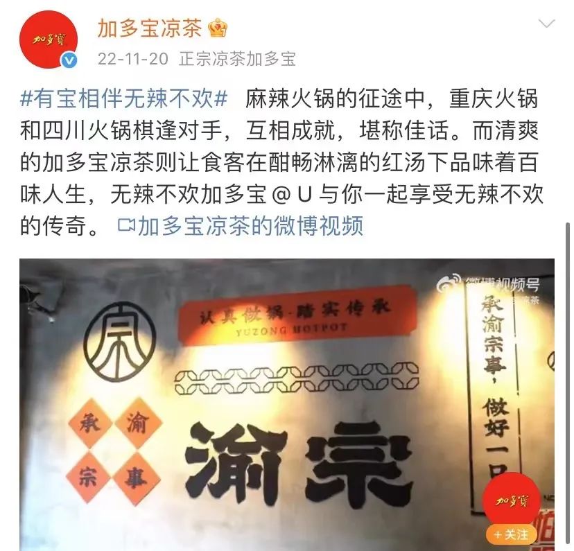 時至今日,對於大眾來説,“怕上火,喝王老吉或者加多寶”的廣告語深入人心,但是二者選誰,好像並沒有什麼不同;在B站或者社交平台,也可以看到一些美食主播在吃到辣味食物時會想到要喝該類產品,但對着店家要王老吉的也經常看到,可“辣味+涼茶”組合營銷路子,明明是加多寶在打的點……