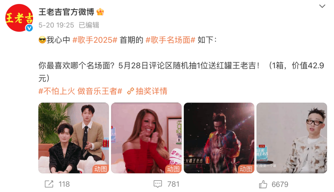 用一個戲劇性“零幀起手”的植入,《歌手2025》和王老吉在營銷上開了個好頭。