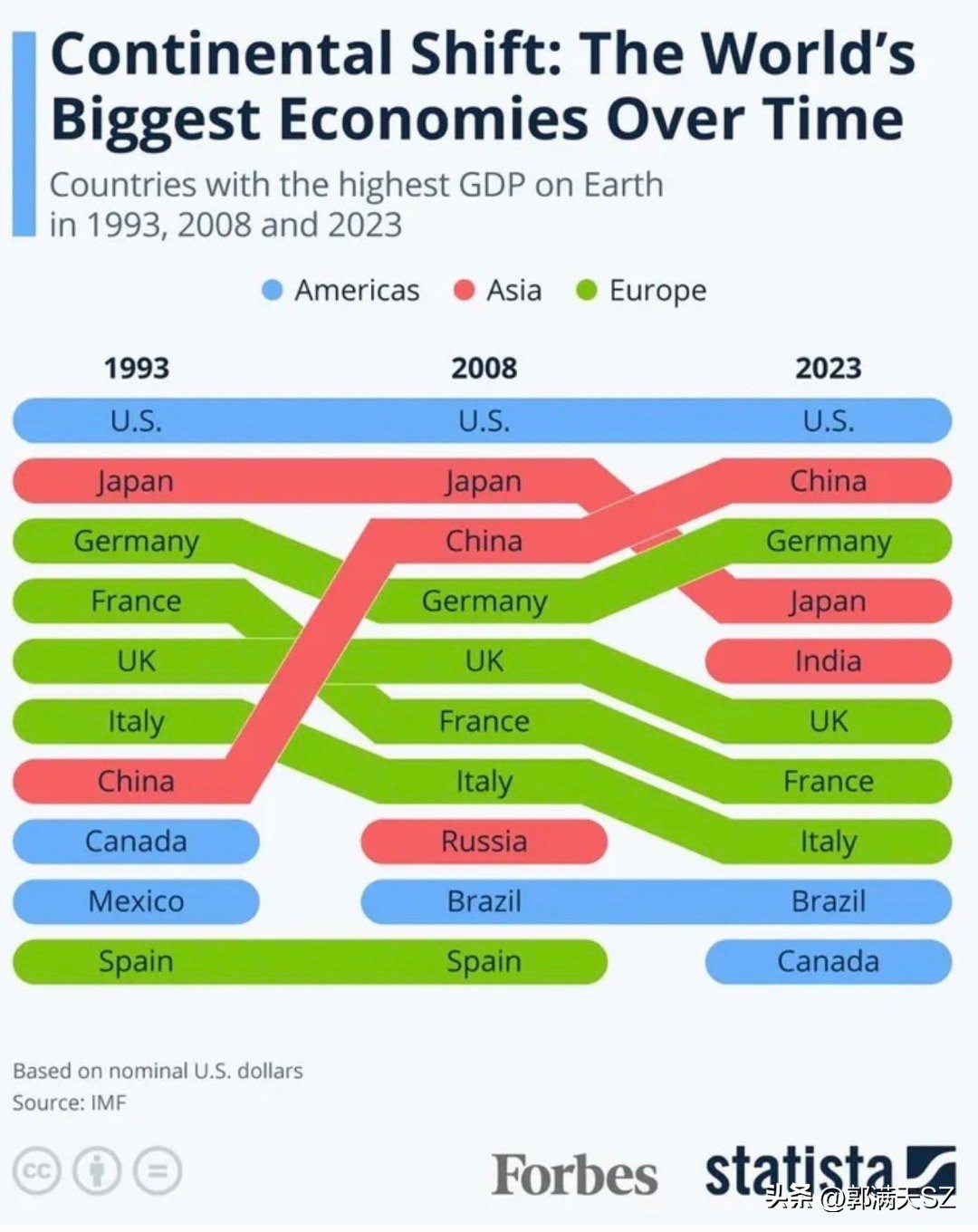 2008年印度的GDP總量排名還在全球十名開外,2023年就已經上升至第五位。