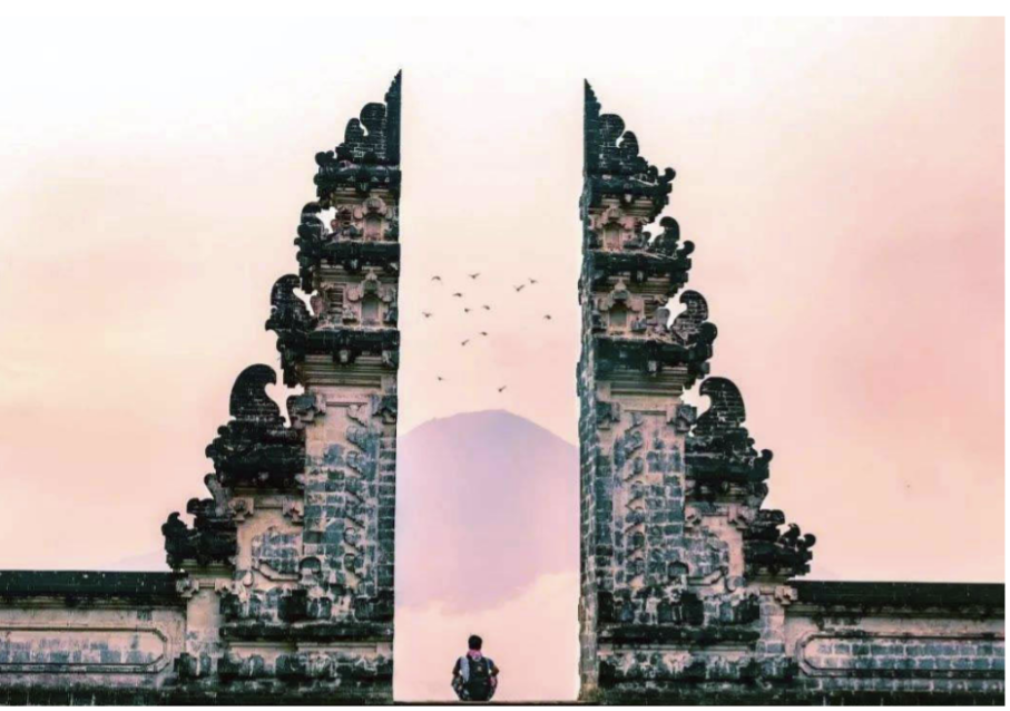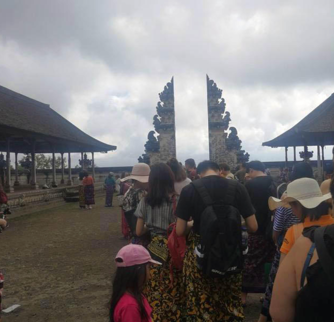 照片裏是一座神廟門前的“天空之鏡”,倒映藍天和雲海,氛圍感封神,慕名打卡的遊客都在鏡頭裏留下了最為神聖的一張照片。