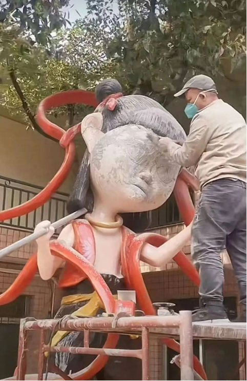 公園想用爆火國漫IP吸引遊客,結果把魔童爆改成了“光頭強”。
