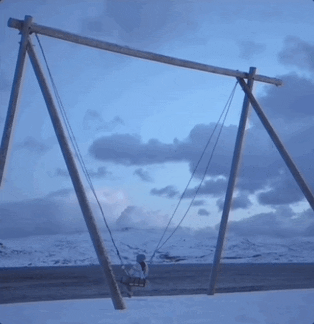 在北極圈內,俄羅斯小鎮捷裏別爾卡有一個“世界上最孤獨的鞦韆”,它本是荒原邊的一個大型鞦韆,背後是黑壓壓的北冰洋。