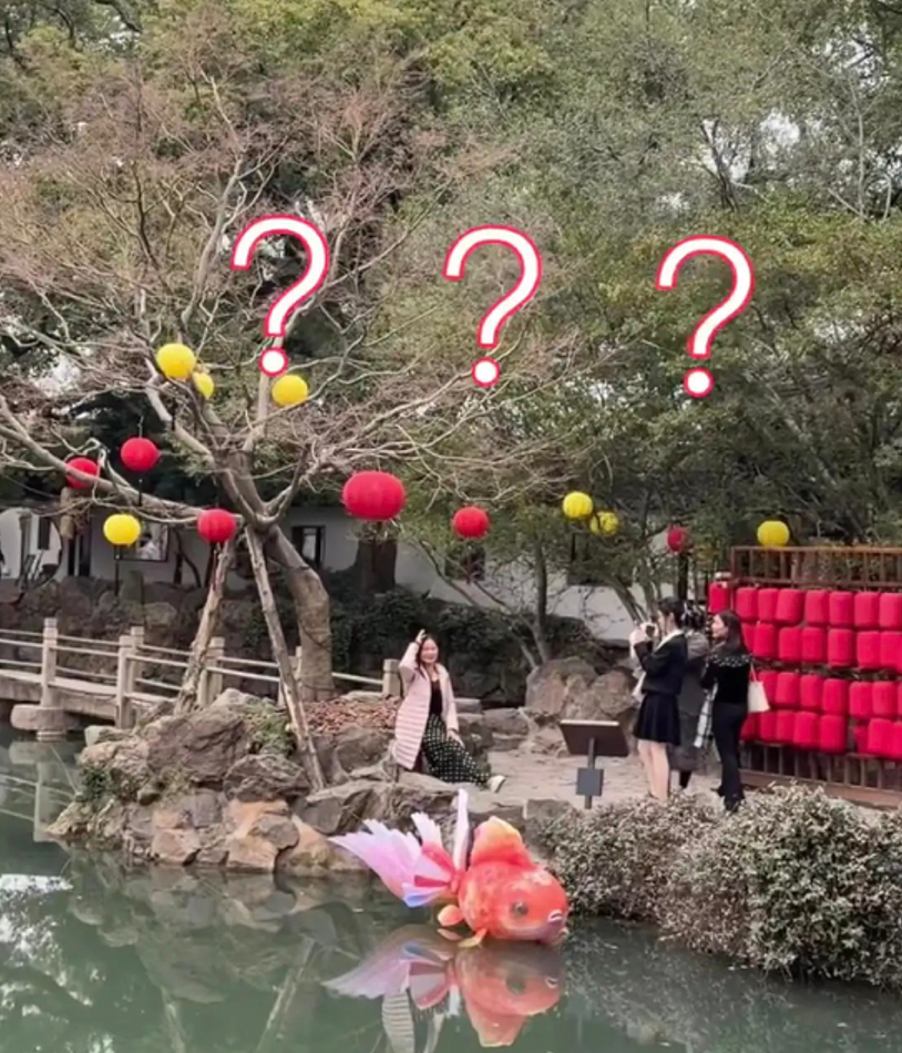古香古色的池塘裏,被硬塞進大型塑料金魚。