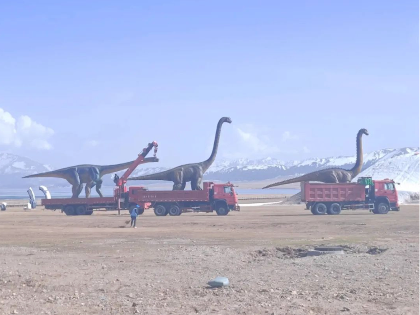新疆賽里木湖湖邊,被放置了許多恐龍模型,美其名曰“遠古美學”。實際上,恐龍模型不僅遮擋了自然風光,也無法融入當地景色。