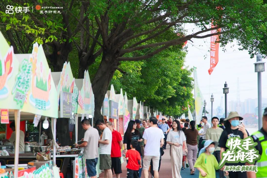 線下,望牛墩鎮龍舟競渡活動的規模也在今年達到新高度。快手於活動期間開設當地名優產品展區和嘉年華市集,匯聚50多家攤位,涵蓋特色美食小吃、非遺文創等攤位,吸引了眾多村民和遊客參與。