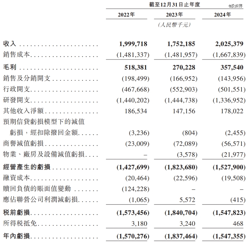 但需要注意的是,奕斯偉計算依然處於虧損高、研發高的處境之下。招股書顯示,2022年-2024年三年間,奕斯偉計算收入分別為20億元、17.52億元、20.25億元;年內虧損分別為15.70億元、18.37億元、15.47億元;同期研發費用分別為14.40億元、14.45億元、13.37億元,佔總收入比重的72%、82%、66%。