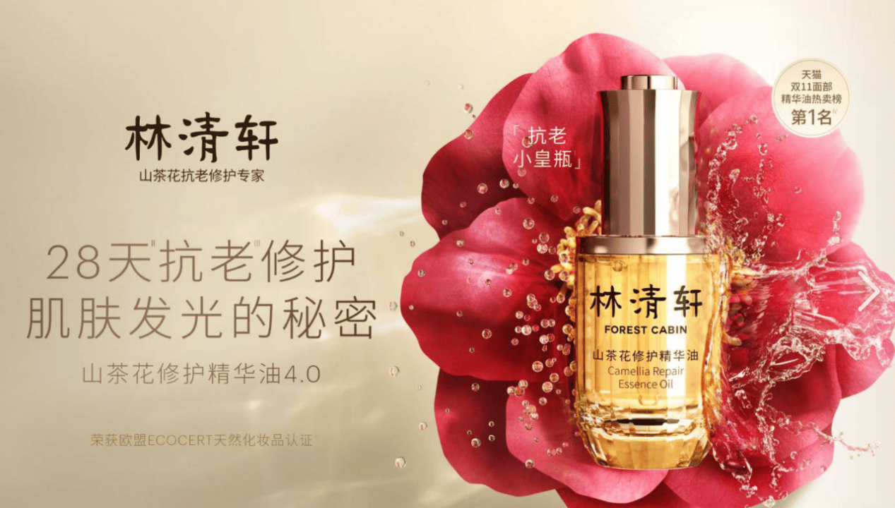 2024年,林清軒零售額在中國高端國貨護膚品牌中排名第一;躋身中國前15大高端護膚品牌(含國際品牌),且是唯一國貨品牌。其核心產品山茶花抗皺修護精華油連續11年蟬聯全國面部精華油銷量冠軍,累計銷量突破3000萬瓶,佔2024年總收入的37%。