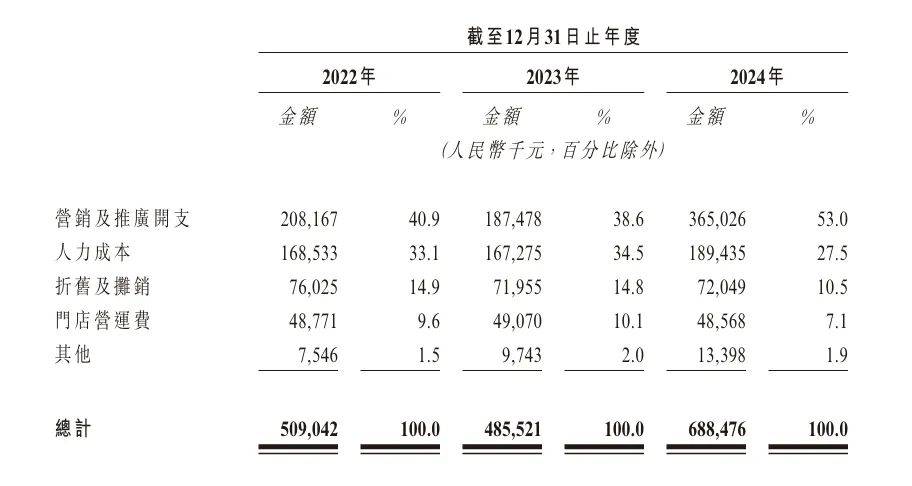但是,消費品行業依然存在一個問題,重營銷輕研發。2024年營銷開支3.65億元(佔收入30%),同比翻倍,而研發投入僅3040萬元(佔比2.5%),營銷開支為研發的12倍。