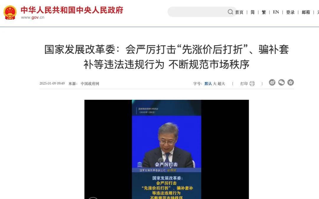 發改委也發文稱:「會嚴厲打擊先漲價後打折、騙補套補等違法違規行為,不斷規範市場秩序」