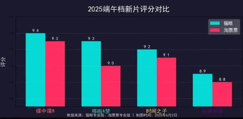 2025年的端午檔出人意料的小熱了一把,目前整體票房落點在5億左右,其中表現最突出的當數《碟中諜8:最終清算》(以下簡稱《碟中諜8》)上映4天累計票房2.29億,屬於端午三天假期內撐住大盤門面的作品,貢獻了近半的票房,暫且擺脱了清明檔和五一檔一直走低的市場態勢。