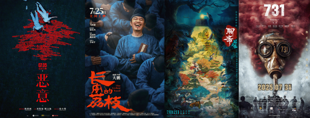 反觀國產電影,已經官宣定檔的犯罪懸疑片《惡意》(7月5日上映)和《長安的荔枝》(7月25日上映)無疑是真正意義上的暑期檔國產頭部大片,追光動畫出品的《聊齋:蘭若寺》(7月12日上映)和戰爭片《731》(7月31日上映)此前也收穫了一定的話題。