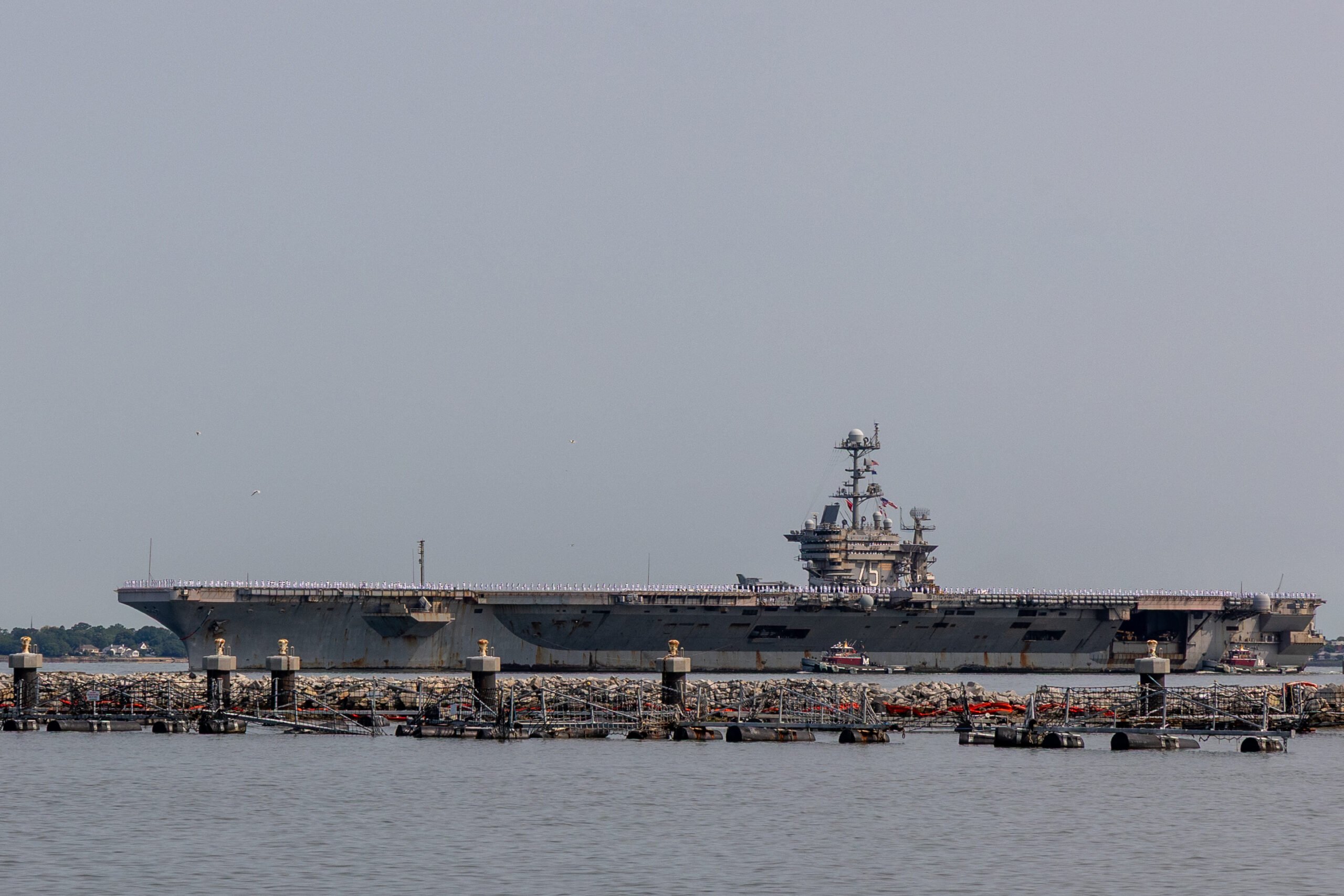 2025年6月1日,“哈里·S·杜魯門”號航空母艦(CVN-75)返回弗吉尼亞州諾福克海軍基地。美國海軍學會新聞圖片