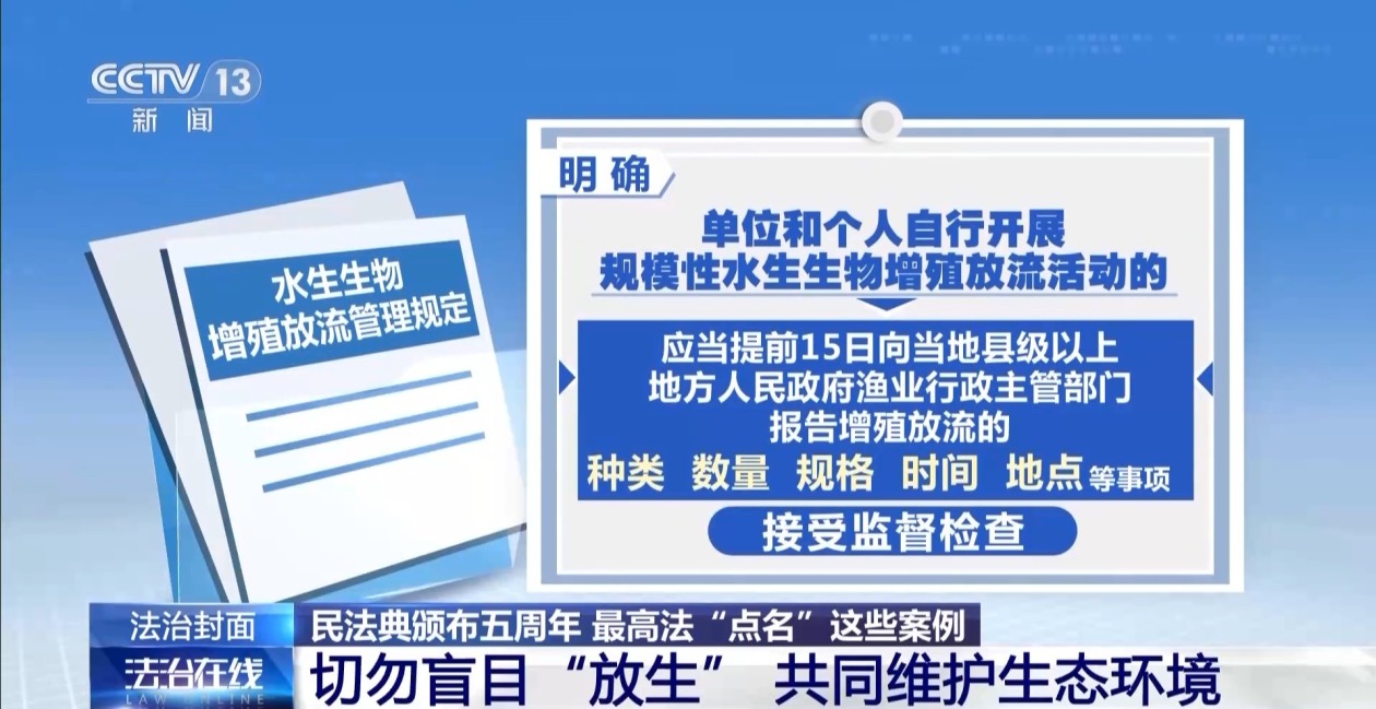 在另一起案件中,當事人為祈福,私自放生大量外來鮎魚,造成了生態資源等損失,為此,檢察機關提起了民事公益訴訟,放生者被要求承擔生態環境損失費用。