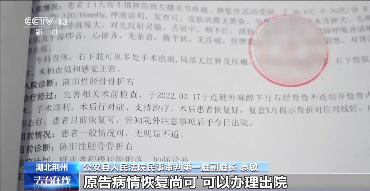 公安縣人民法院民事審判第一庭副庭長 袁敏:本院對原告的整個病程資料進行了詳細的查閲,在查閲病程資料的過程中,發現醫院醫生多次記載:“原告病情恢復尚可,可以辦理出院。”但是原告仍未辦理出院。醫院的客觀診斷對本案的處理提供了核心的關鍵證據,特別是對“掛牀”時長的認定提供了很關鍵的證據。