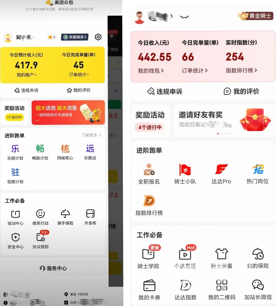 不同平台騎手端後台截圖。(來源:受訪者)信網6月3日訊在城市的大街小巷,人們總能看到騎手們風馳電掣的身影,他們為市民傳遞着生活的所需。今年京東上線外賣業務,並承諾將為騎手投繳社保,再一次讓騎手的生存現狀受到關注。近日,信網(0532-80889431)在採訪中發現,一些熟練騎手月收入可達萬元,雖然賺的不少,但也面臨着體力透支和交通風險——他們都期望行業能建立更完善的制度,讓這份工作從“短期選擇”變成“有奔頭”的可持續職業。