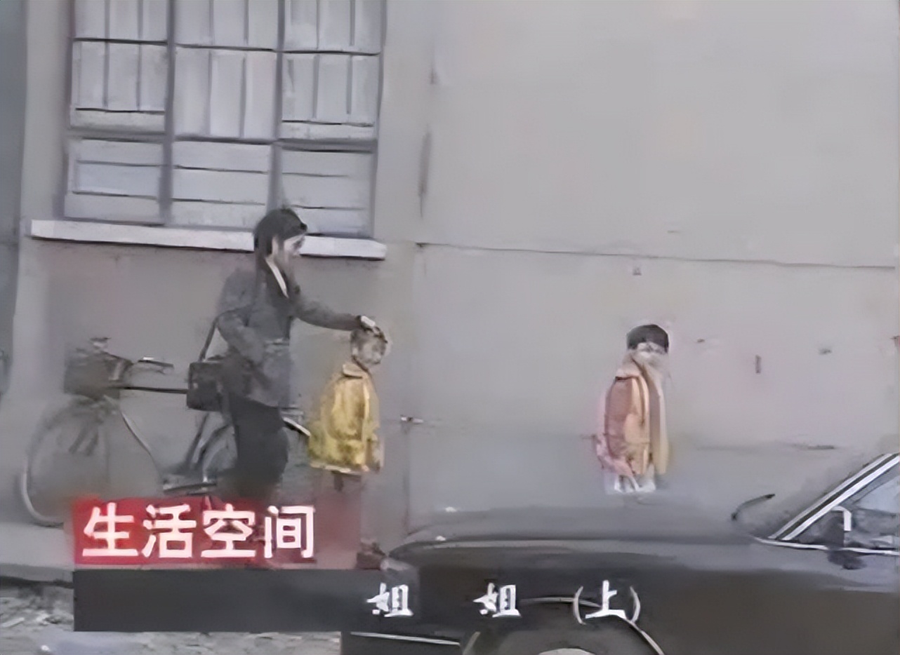 母親帶着兩個孩子出門,緊緊拉住弟弟的手。姐姐孤零零地走在前頭,彷彿跟他們不是一家人。