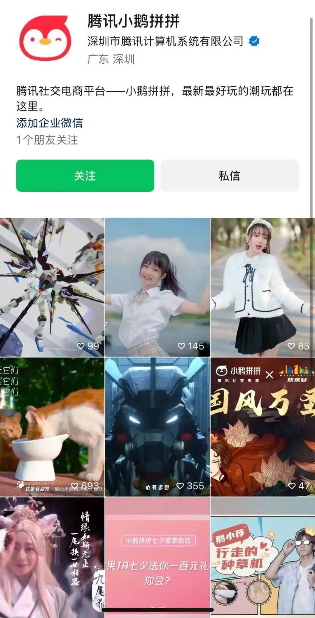 然而,“小鵝拼拼”沒有在C端打出知名度,《號外工作室》搜索“小鵝拼拼”發現,最後一條視頻內容更新在2021年12月25日,視頻推廣的產品為漢服、JK、模型手辦,內容缺乏新意和吸引力,產品定位並不清晰,2022年2月,“小鵝拼拼”停止運營。