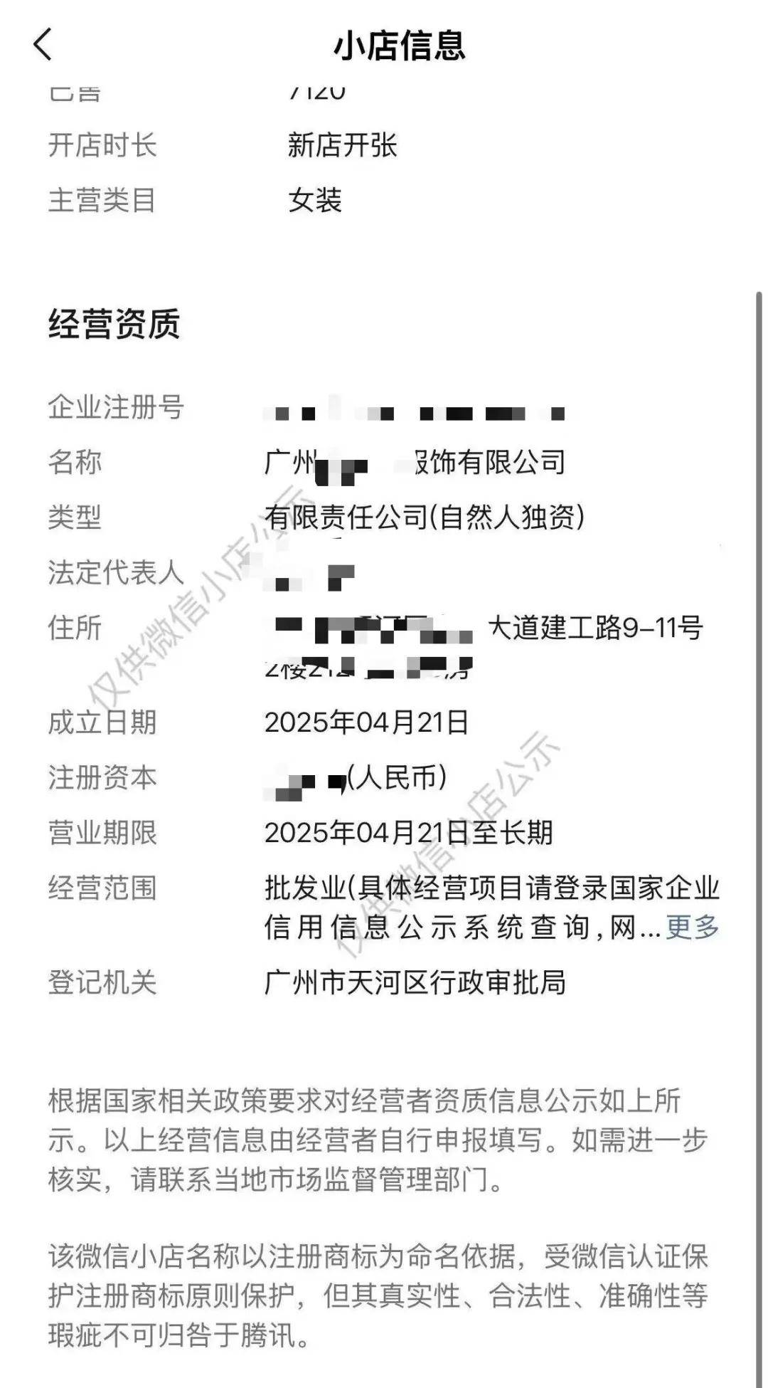 微信小店此前曾被外界質疑商品篩選不嚴,有大量微商的三無產品氾濫等問題。目前,《號外工作室》搜索發現,直播點擊出現的“微信小店”鏈接中,會公示企業經營資質,數據包括主營類目、開店市場和已銷售量,極大避免“微商”亂象。