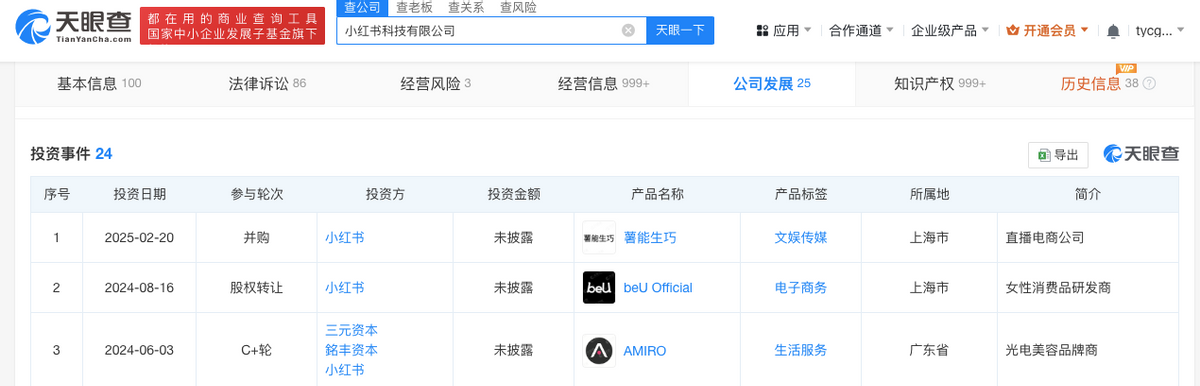 根據天眼查APP數據顯示,今年2月份,小紅書併購了薯能生巧,後者是一家直播電商公司。
