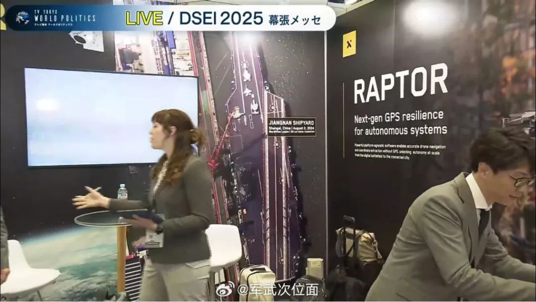 2025年日本軍警防務展覽會上,美國Maxar太空技術公司拿福建艦的衞星圖作為背景展板