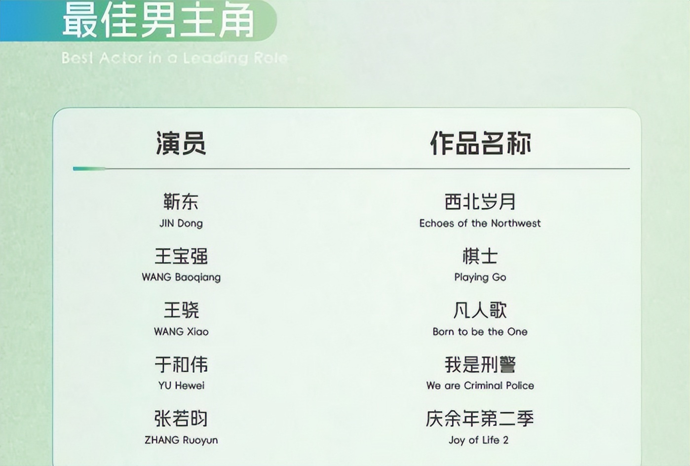 一個冷知識,於和偉是國內第六位在白玉蘭上斬獲過兩個獎項的男演員(18年《軍師聯盟》最佳男配和21年《覺醒年代》最佳男主),也是唯一一個視帝、男配都得過的男演員,算上大器晚成、厚積薄發的典型代表。